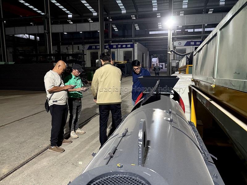 Under the guidance of our team, the customers toured the organic fertilizer production equipment display area, focusing on understanding the application of equipment such as chain plate compost turners and horizontal mixers in harmless manure treatment and organic fertilizer production. The customers inquired in detail about the equipment's processing capacity, energy consumption, and environmental indicators. Our technical staff, taking into account Indonesian local environmental policies and agricultural production practices, explained how the equipment efficiently converts pig farm manure into high-quality organic fertilizer, achieving resource recycling, solving environmental problems, and providing high-quality fertilizer for agricultural planting. This green solution highly aligns with the customer's project concept.